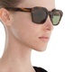 Embrace modern style with these chic rectangular tortoise shell sunglasses. With medium green tinted lenses finished with abstract, cut-out style frames these cool sunglasses have a practical and protective style that packs a punch in the style stakes.